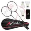 4 full-sized badminton rackets with sturdy steel frames and comfortable grips